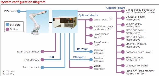 A rich set of programming functions come standard with the E Controller to support a wide range of applications. Functions can be combined and easily configured within a system to suit a particular application. Also, the powerful Kawasaki AS Programming Language provides sophisticated robot motion and sequence controls.